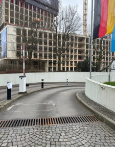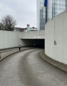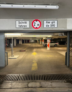 Angekommen an der Rampe, fährst du nach rechts in die Tiefgarage hinein.