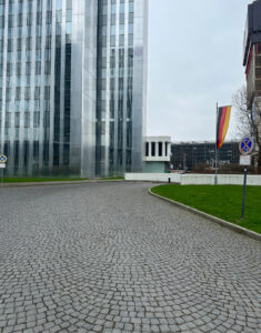 Fahre geradeaus in Richtung der Rampe, die mit der Deutschlandfahne beginnt.